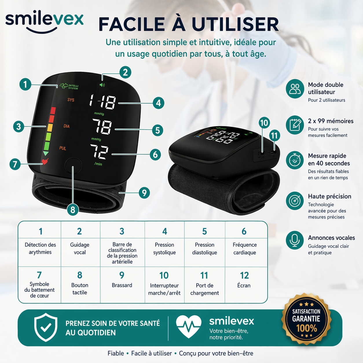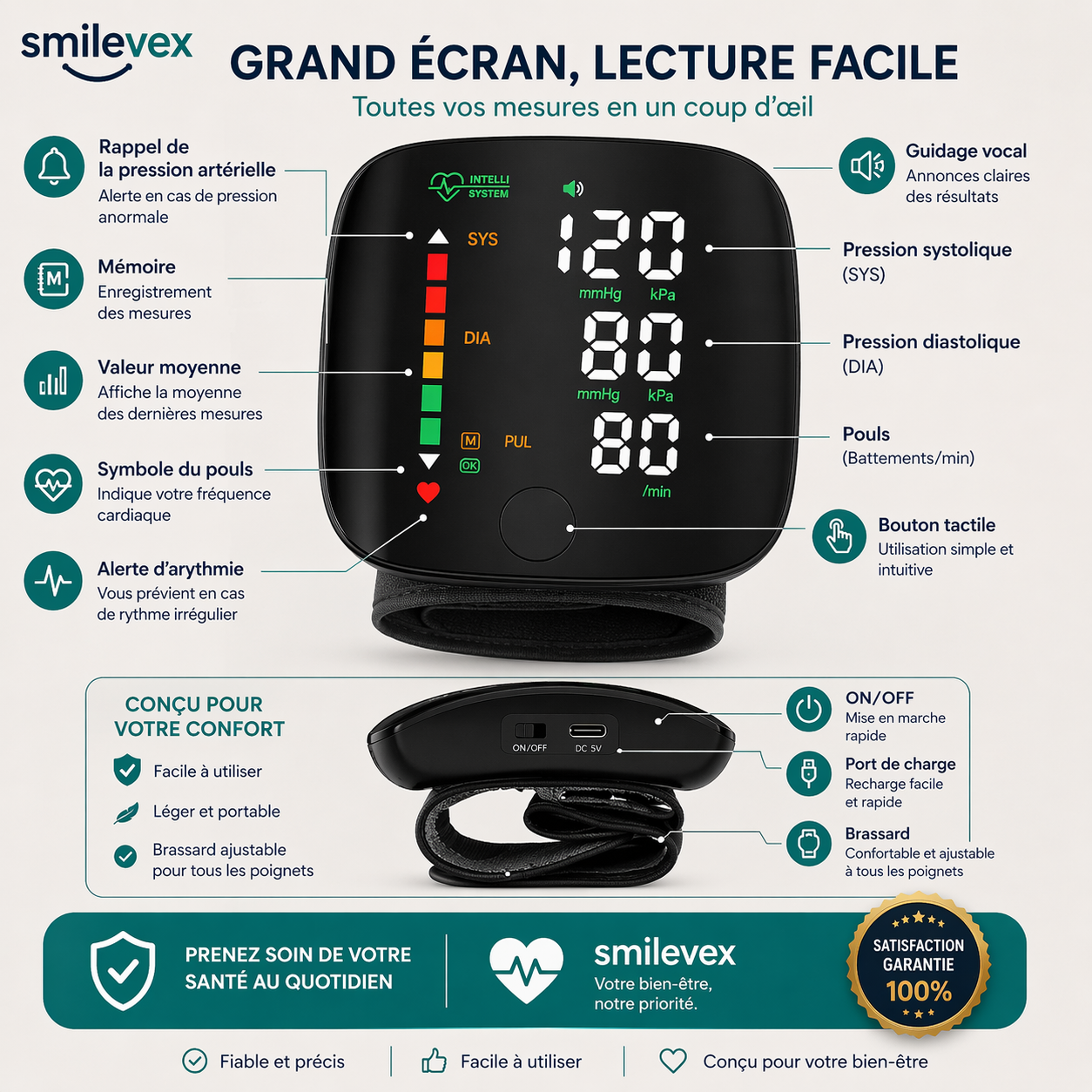 - ⌚ Tensiomètre au poignet Smilevex™ TensioSmart